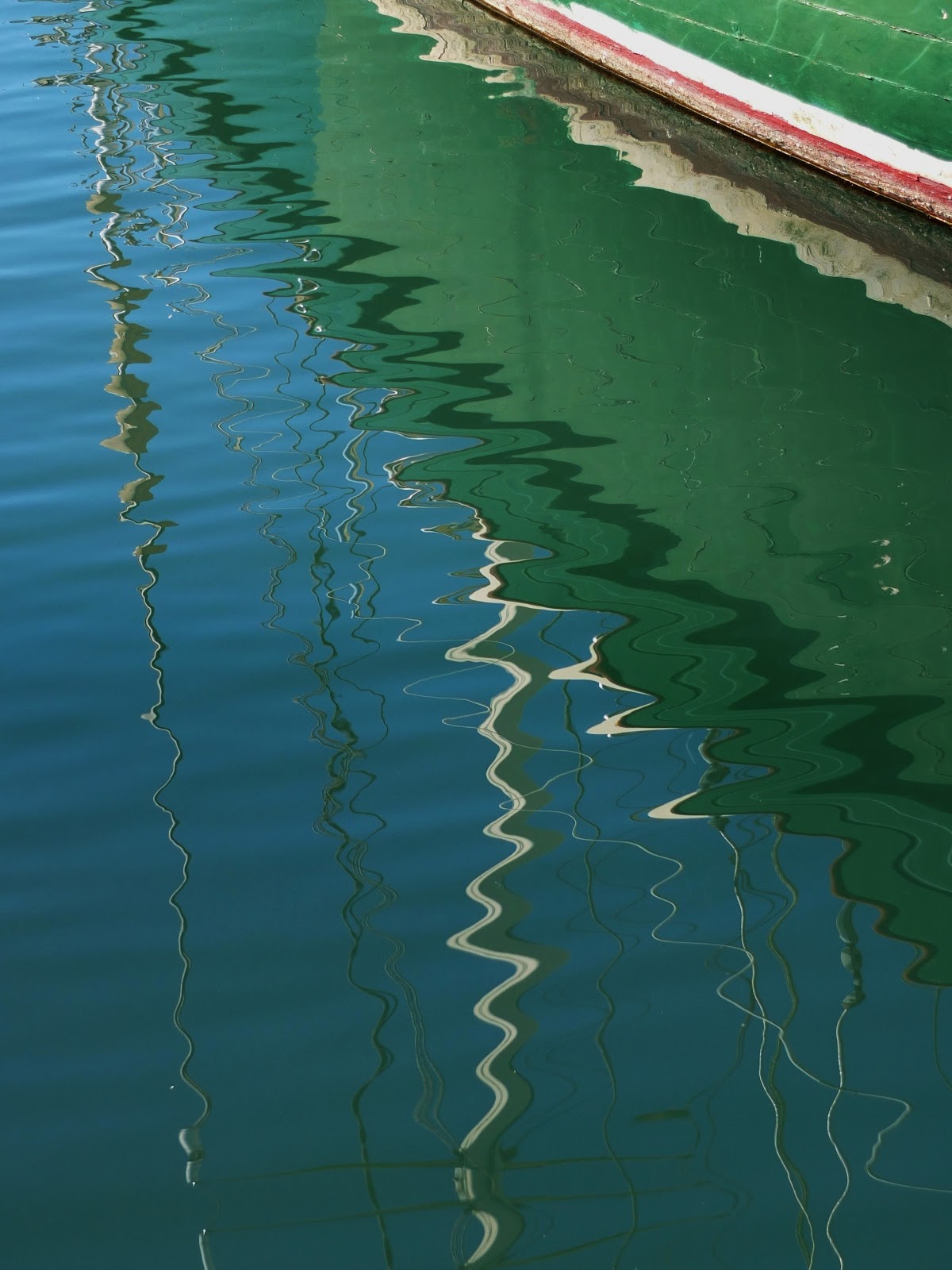 Ducks' wakes put a nap to the water's surface, but I like the rippled look of this reflection:
