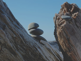 This old driftwood seems to be a shrine for many cairns, natural and on purpose: